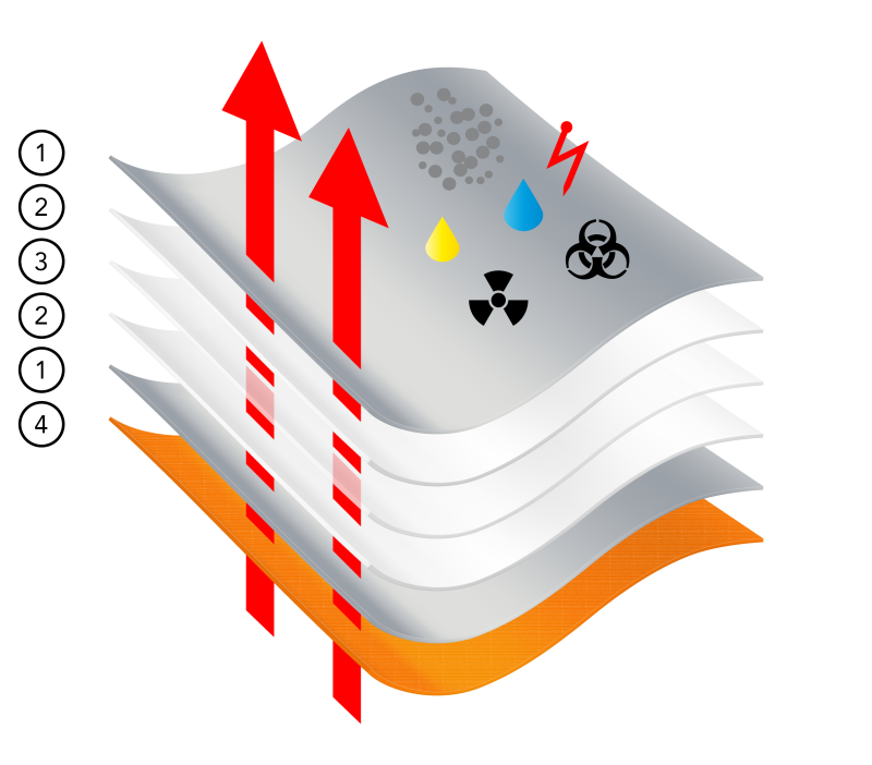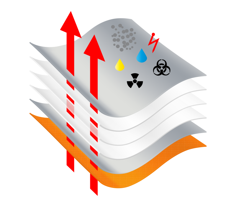 3) Barrier Film – étanche aux produits chimiques et aux particules (contre liquides, gaz, aérosols).